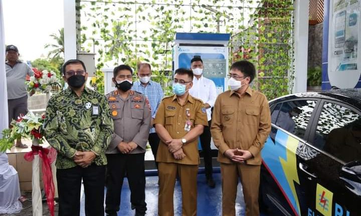 METROKAWANUA — Stasiun Pengisian Kendaraan Listrik Umum (SPKLU) Regional SULMAPANA di Kawasan Megamas Manado, diresmikan Walikota Andrei Angouw, Senin (17/1/2022).