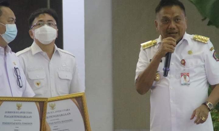 Kota Manado menerima penghargaan sebagai Kota dengan percepatan vaksinasi pertama di Provinsi Sulut, ada juga penghargaan kedua yang diterima yakni sebagai kota dengan peserta BPJS Ketenagakerjaan terbanyak ke 3.