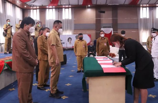 METROKAWANUA – Wakil Walikota Manado, dr. Richard Sualang memimpin upacara Pengambilan Sumpah/Janji dan Pelantikan Pejabat Pengawas di Lingkungan Pemkot Manado hari ini, Senin (31/01/2022) di Aula serbaguna Kantor Walikota Manado.