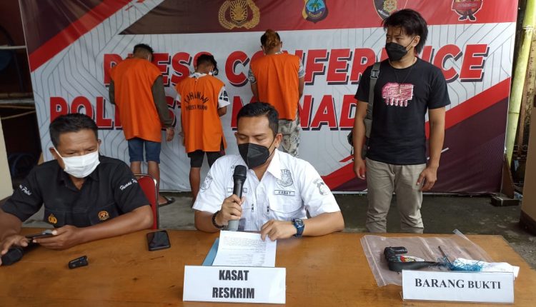 Tiga orang pelaku tersebut ditangkap Tim Gabungan Resmob dan Opsnal Polresta Manado yang dipimpin Kanit Resmob Ipda Heraldy Yudanthara dan Katim Opsnal Aiptu Jemmy Mokodompit.