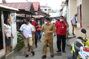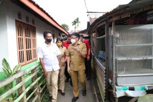 Lokasi pertama yang dikunjungi Walikota adalah Kampung Hirosima Kombos Barat Lingkungan II. Disini Walikota berdialog dengan warga sambil melihat kondisi pemukiman yang ada.