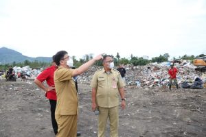 Walikota menyempatkan diri mampir di TPA Sumompo bertemu dengan Kadis DLH Frangky Porawouw dan tim melihat proses bongkar dan pengadukan sampah.