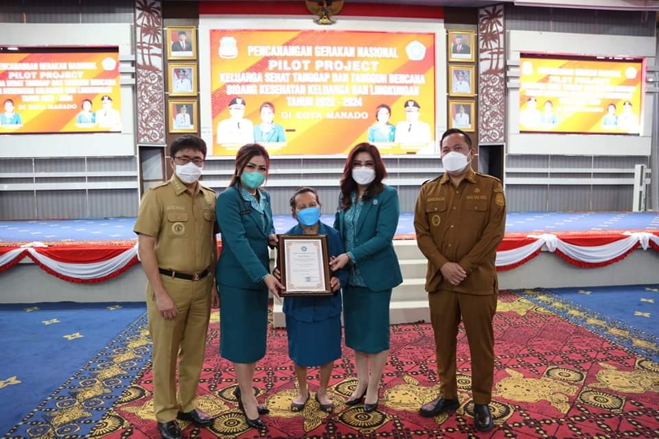 Selesai sambutan Wali Kota, dilaksanakan Pencanangan Gerakan Nasional Pilot Project Keluarga Sehat Tanggap dan Tangguh Bencana Bidang Kesehatan Keluarga dan Lingkungan Tahun 2022-2024 di Kota Manado.