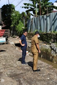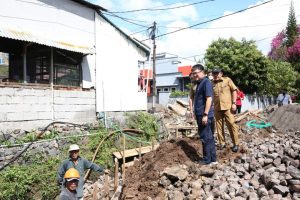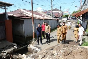 Kali ini Wali Kota didampingi Kadis PUPR Johny Suwu mengawali cek lapangan di Kompleks Palem Jalan Sakura Winangun Satu. Disini Wali kota melihat pekerjaan perbaikan drainase yang sedang dilakukan.