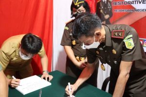 Selesai acara peresmian dilanjutkan dengan pengguntingan pita serta penandatanganan prasasti rumah restorative justice untuk Kota Manado, Minahasa Selatan, Minahasa Utara dan Kabupaten Talaud oleh Kejati Sulut.