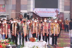 Hadir mewakili Gubernur Sulawesi Utara Kadis Perpustakaan Sulut Dr. Drs. Asripan Nani, M.si, Kakanwil Kementrian Agama Sulawesi Utara Bpk. H. Anwar Abubakar S. Ag., M.Pd, Dirjen Bimbingan Masyarakat Buddha Nyoman Suria Darma, Ketua Umum DPP Permabudhi Prof. Philip, Ketua BKSAUA Pdt. Judy Tunari M. Teol, dan jajaran pemerintah.
