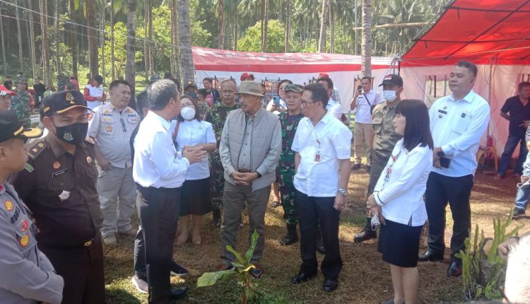 Pernyataan senator Letjen TNI Marinir (Purn) Dr. Nono Sampono, S.Pi,M.Si disampingnya kepada awak media dalam kunjungan dilokasi Hunian Sementara (Huntara) bersama dengan para senator Dapil Sulut Steva B.A.N Liow, juga Jhafar Alkatiri yang didampingi Wakil Bupati Pdt. Petra Yanni Rembang. M.Th, Rabu (06/07/22)