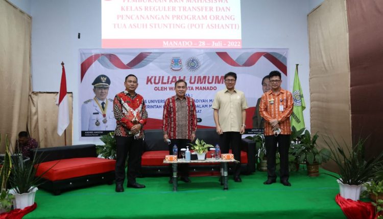METROKAWANUA – Pagi ini (28/07/2022) Walikota Manado menuju Kelurahan Pandu tepatnya di Kampus Muhammadyah Manado. Kehadiran Walikota di Kampus ini dalam rangka Pembukaan KKN Mahasiswa Kelas Reguler Transfer dan Pencanangan Program Orang Tua Asuh Stunting (Pot Ashanti). Pada kunjungan ini, Walikota memberikan Kuliah Umum dengan Tema : Sinergitas Universitas Muhammadiyah Manado Bersama Pemerintah Kota Manado Dalam Membangun Manado Hebat.