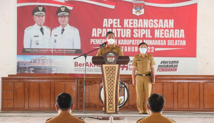 Metrokawanua. Com — Wujud penerapan revolusi mental kepada seluruh Aparatur Sipil Negara (ASN). Pemerintah Kabupaten Minahasa Selatan (Minsel) menggelar Apel Kebangsaan.