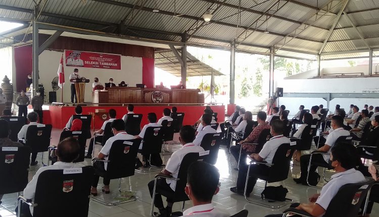 Kegiatan seleksi tambahan yang dilaksanakan diAula Waleta kantor bupati. Rabu (20/09/22) yang dibuka oleh Wakil Bupati Pdt. Petra Yanni Rembang. M.Th diikuti oleh 78 bakal calon yang ada di-11 desa dari 42 desa yang akan melaksanakan pilhut.