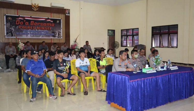 Metrokawanua. Com — Polres Minahasa Selatan (Minsel) menggelar kegiatan doa bersama atas korban tragedi di Stadion Kanjuruhan Malang, Selasa (04/10/2022).