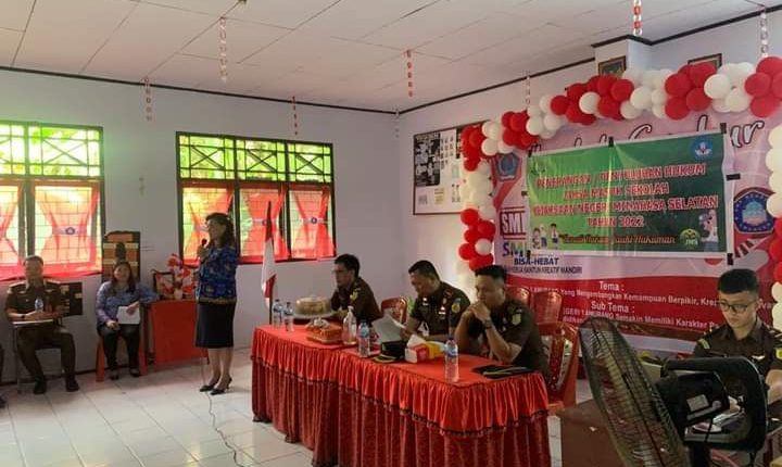 Sebagai narasumber Kepala Kejaksaan Negeri Minahasa Selatan Budi Hartono, SH M. Hum yang didampingi kasie intel Aldy Hermon.