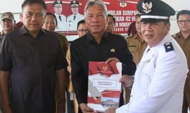 Metrokawanua. Com — Bupati Kabupaten Minahasa Selatan (Minsel), Franky Donni Wongkar. SH mengambil sumpah jabatan dan melantik 42 Kepala Desa (Hukum Tua) diAula Waleta, Kamis (03/11/22).