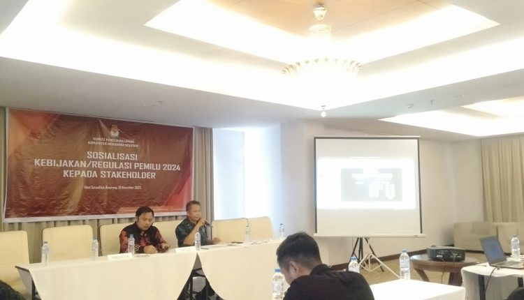 KPU Minsel menyelenggarakan Sosialisasi Kebijakan/Regulasi Pemilu 2024 kepada Stakeholder, yang dilaksanakan diHotel Sutanraja Amurang, Jumat (18/11/22).