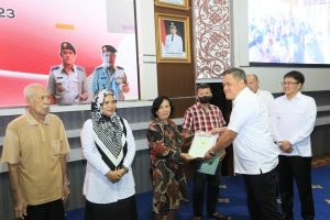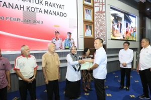 Manado, Metrokawanua – Wali Kota dan Wakil Wali Kota Manado Andrei Angouw dan Bpk. Richard Sualang menghadiri kegiatan Penyerahan Sertifikat Hak Atas Tanah Hasil Kegiatan Redistribusi Tanah di Ruang Serbaguna Kantor Wali Kota Manado, Rabu (8/2).
