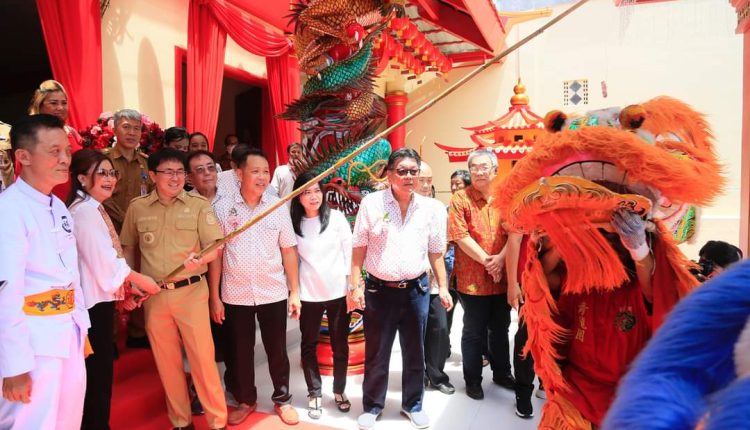 Manado, Metrokawanua – Wali Kota Manado Andrei Angouw didampingi Istri Tercinta Irene Golda Angouw Pinontoan yang juga sebagai Ketua Tim Penggetak PKK Kota Manado menghadiri Peresmian Tempat Ibadat Tridharma HOK TEK CIN SIN di Paal IV Manado. Selasa (21/02-2023)