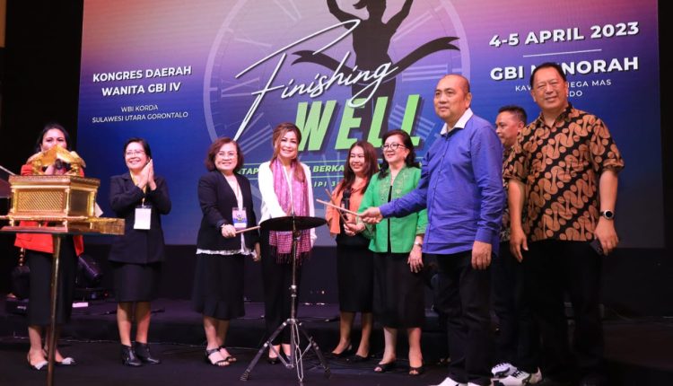 Manado, Metrokawanua – Ketua Tim Penggerak PKK Kota Manado Ny.Irene Angouw – Pinontoan membuka kegiatan kongres daerah wanita GBI Sulutgo yang ke IV.  bertempat di GBI Menorah kawasan Megamas Kota Manado yang di tandai dengan pemukulan simbal Drum.