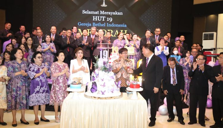 MAnado, Metrokawanua – Wali Kota Manado Andrei Angouw bersama Ketua TP-PKK Kota Manado Ny. Irene Angouw-Pinontoan, menghadiri Ibadah Paskah yang dirangkaikan dengan Perayaan Hari Ulang Tahun ke-19 Gereja Bethel Indonesia Menorah Manado. Minggu, 9 April 2023,