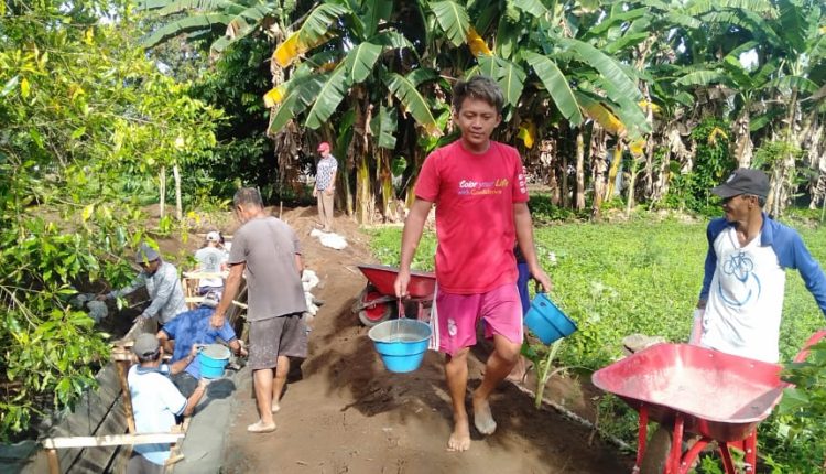 Melalui Dana desa pemerintah desa melaksanakan pekerjaan fisik pembuatan jalan rabat beton diwilayah perkebunan Pakeke.