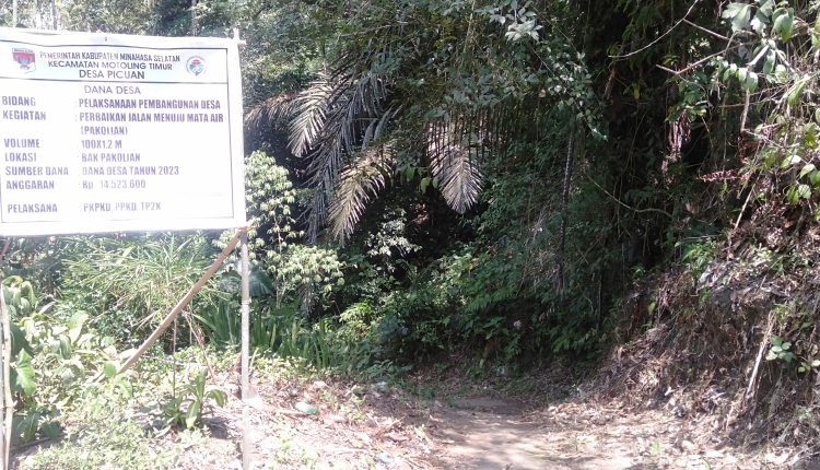Metrokawanua. Com — Bersumber dari dana desa (Dandes) tahun 2023 Pemerintah Desa Picuan Kecamatan Motoling Timur, melaksanakan perbaikan jalan sentra Tani sebagai upaya meningkatan ekonomi masyarakat.