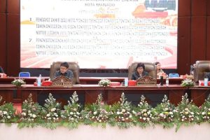 METROKAWANUA – (9/11/23) – Wali Kota Manado, didampingi Dr. Micler.C.S. Lakat, S.H., M.H., hari ini menghadiri Rapat Paripurna DPRD Kota Manado di Kantor DPRD Kota Manado di Jalan Pemuda Sario Utara. Agenda utama rapat adalah pembahasan Ranperda tentang APBD Kota Manado Tahun Anggaran 2024 dan Ranperda tentang Perubahan Kedua Atas Peraturan Daerah Nomor 2 Tahun 2016 tentang Pembentukan dan Susunan Perangkat Daerah Kota Manado.