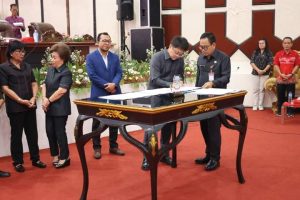 Penandatanganan melibatkan Ketua dan Pimpinan DPRD Kota Manado, Sekretaris Pemerintah Kota, dan Wali Kota Manado. Setelah penandatanganan, surat keputusan diserahkan kepada Wali Kota Manado.