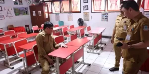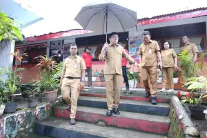 Wali Kota Andrei Angouw melihat kondisi sekolah dan sarana mobiler yang ada. Selama kunjungan, beliau juga mengunjungi beberapa ruangan sambil bertanya mengenai pemanfaatan ruangan kelas.