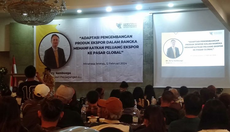 Metrokawanua. Com — Dorong peningkatan pendapatan pelaku usaha. Kementerian Perdagangan gelar sosialisasi “Adaptasi pengembangan produk ekspor dalam rangka memanfaatkan peluang ekspor kepasar global”, kepada para pelaku usaha mikro, kecil, dan menengah (UMKM) yang ada di kabupaten Minahasa Selatan (Minsel)