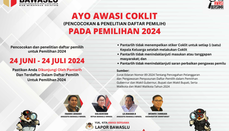 Metrokawanua. Com — Badan Pengawas Pemilu Bawaslu Kabupaten Minahasa Selatan (Minsel) mengajak masyarakat bersama Panwascam dan Pengawas Desa/Kelurahan melakukan pengawasan pelaksanaan Coklit yang dilakukan oleh PPDP dari rumah ke rumah.