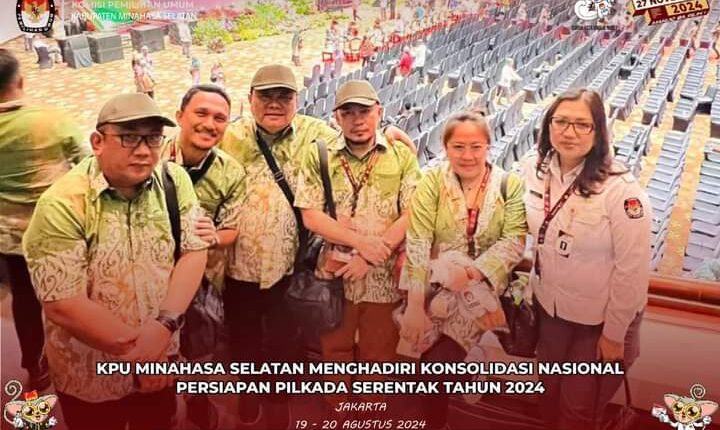 Metrokawanua. Com — Ketua dan anggota Komisi Pemilihan Umum (KPU) Kabupaten Minahasa Selatan (Minsel) 19 – 20 Agustus 2024 Kemarin menghadiri Konsolidasi Nasional Kesiapan Pilkada Serentak 2024 yang berlangsung di Jakarta Convention Center. Acara ini merupakan forum strategis untuk mempersiapkan seluruh jajaran KPU di seluruh Indonesia menghadapi Pilkada Serentak yang dijadwalkan berlangsung akhir tahun ini.