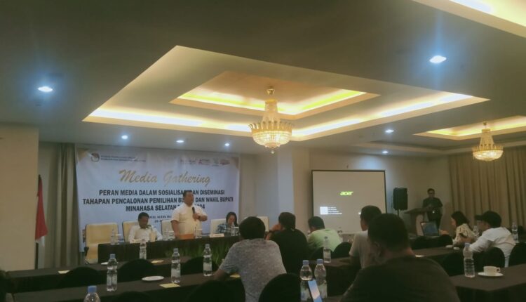 Metrokawanua. Com — Komisi Pemilihan Umum (KPU) Kabupaten Minahasa Selatan (Minsel) bersama dengan insan pers melaksanakan media gathering, membahas peran media dalam sosialisasi dan diseminasi tahapan pencalonan pemilihan bupati dan wakil bupati Minahasa Selatan tahun 2024.