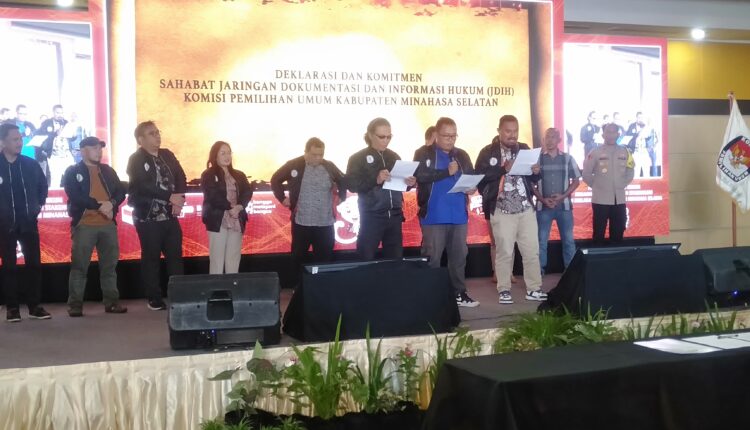 Usai diresmikan, dilanjutkan dengan pembacaan deklarasi dan komitmen sahabat JDIH dari perwakilan Badan Adhoc dan Stakeholder. Dari pers Donald Mamoto. Dari Organisasi Masyarakat Reinaldo Sasundame, serta mewakili Panitia Pemilihan Kecamatan (PPK) yaitu Douglas Panit.
