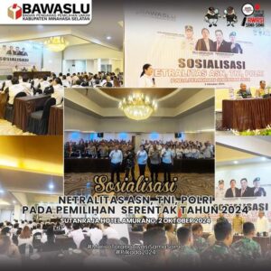 Metrokawanua. Com — Dalam Mewujudkan Pemilu yang demokratis dan integritas Badan Pengawas Pemilihan Umum (Bawaslu ) Kabupaten Minahasa Selatan (Minsel) menggelar Sosialisasi Pengawasan Netralitas Aparatur Sipil Negara (ASN ),TNI dan Polri dalam Pemilihan Kepala Daerah (Pilkada ) serentak 2024. Rabu ( 2/10/24 ) diHotel Sutanraja Amurang.
