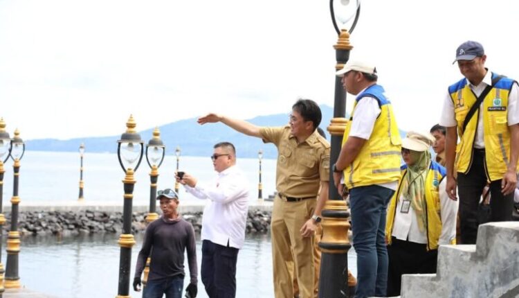 METROKAWANUA, MANADO – Wali Kota Manado, Andrei Angouw, meninjau progres pembangunan Malalayang Beach Walk (MBW) II di kawasan Pantai Malalayang, Kota Manado, pada Selasa (4/2).